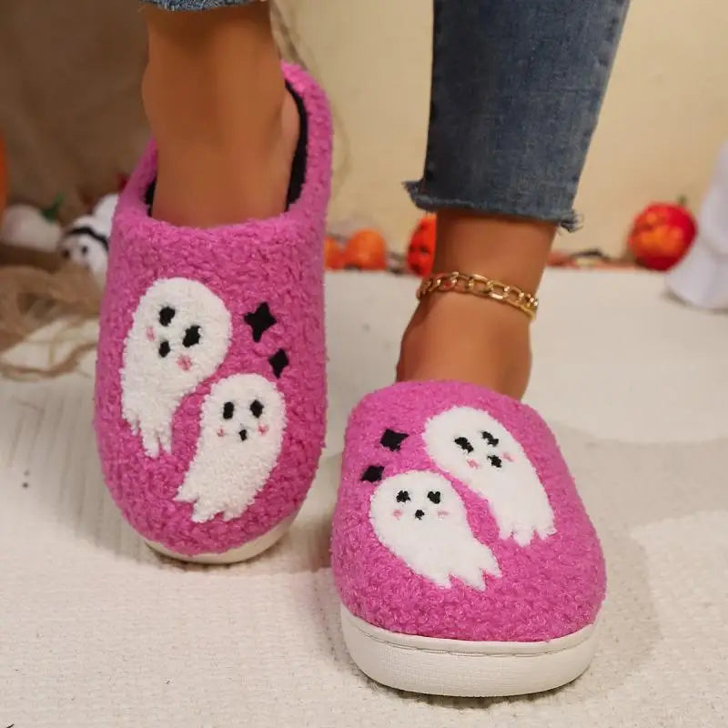 Pink Halloween Ghosts Preppy Aesthetic Cozy Slippers
