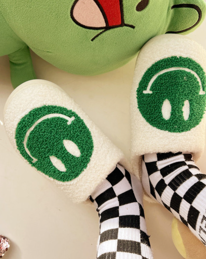 Preppy Smiley Face Cozy Slippers